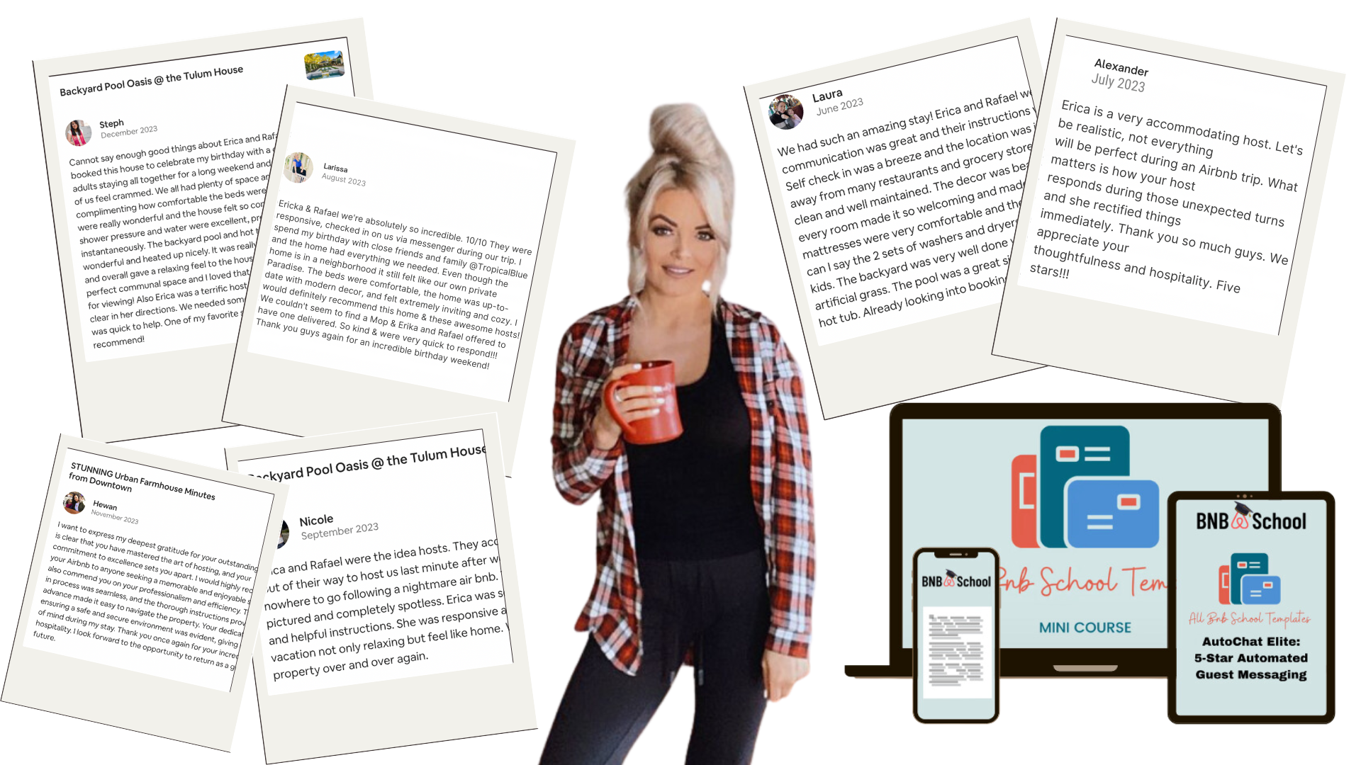 These scripts were created by a team of seasoned professionals with extensive experience in the Airbnb hosting industry. The team, led by Erica, who is renowned for her expertise in short-term rentals and her innovative EPIC Method™, combined their deep understanding of guest-host dynamics, market trends, and effective communication strategies. Their collective insights and practical experience in successful Airbnb hosting have been distilled into these scripts, ensuring that they are not only based on theoretical knowledge but also on real-world application and proven results in enhancing guest experiences and boosting host ratings.
